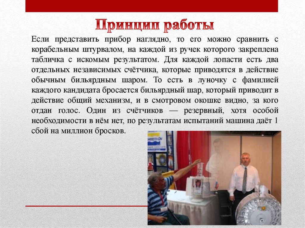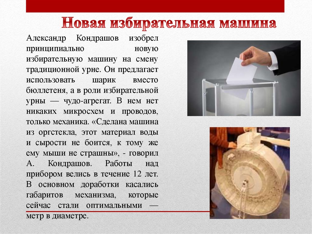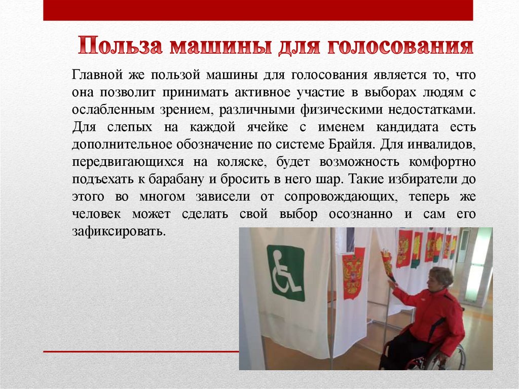 Главной же пользой машины для голосования является то, чтоона позволит принимать активное участие в выборах людям с