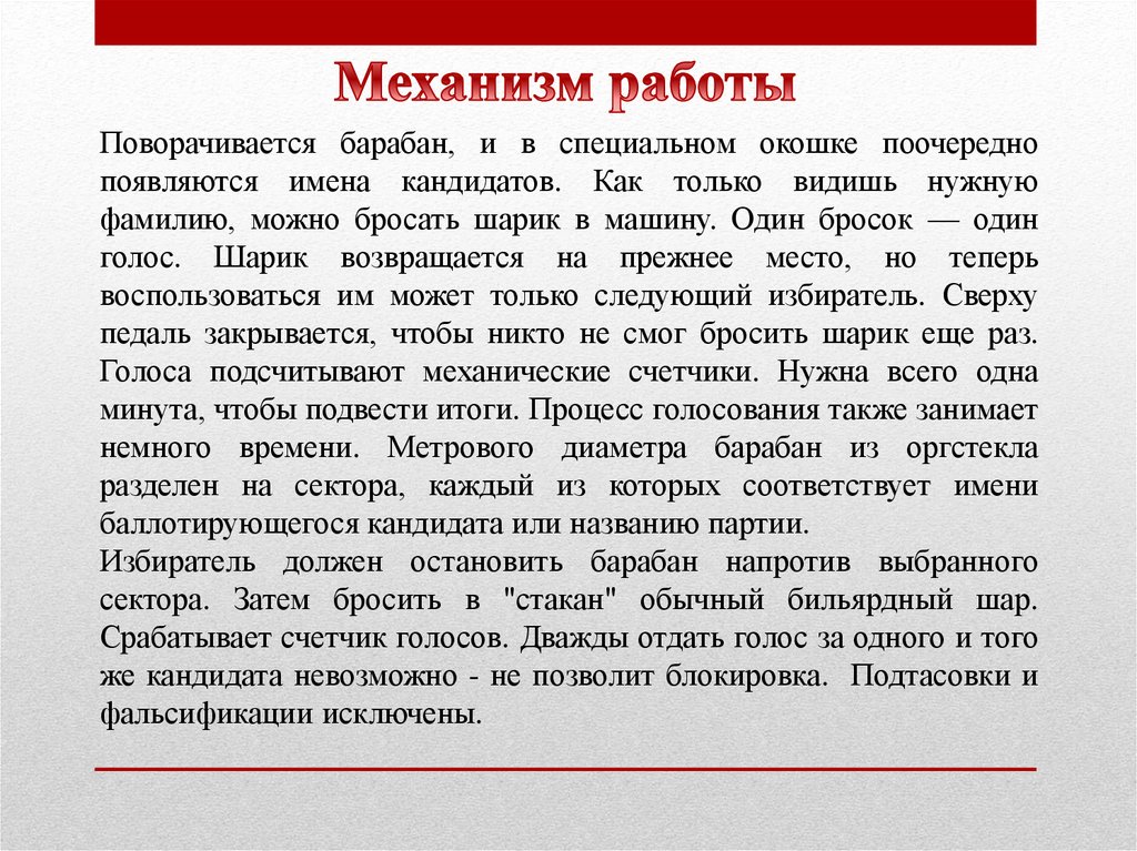 подъехать к барабану и бросить в него шар. Такие избиратели до