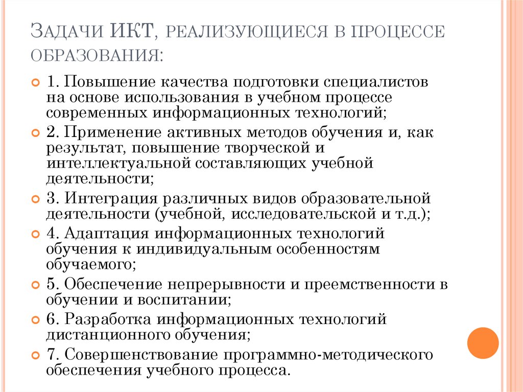 ЗАДАЧИ ИКТ, РЕАЛИЗУЮЩИЕСЯ В ПРОЦЕССЕОБРАЗОВАНИЯ: