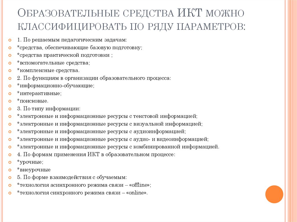 ОБРАЗОВАТЕЛЬНЫЕ СРЕДСТВА ИКТ МОЖНОКЛАССИФИЦИРОВАТЬ ПО РЯДУ ПАРАМЕТРОВ: