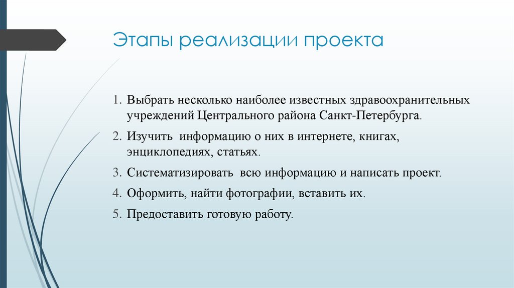 Этапы реализации проекта1. Выбрать несколько наиболее известных здравоохранительных