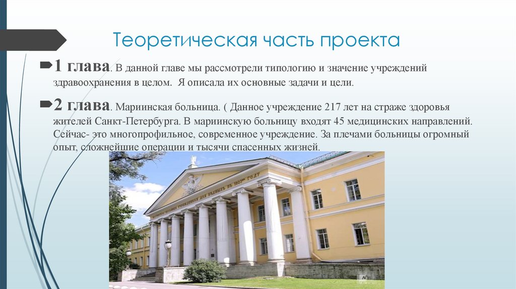 Практическая часть проекта1. Исследовали историю создания и развития Мариинской больницы.