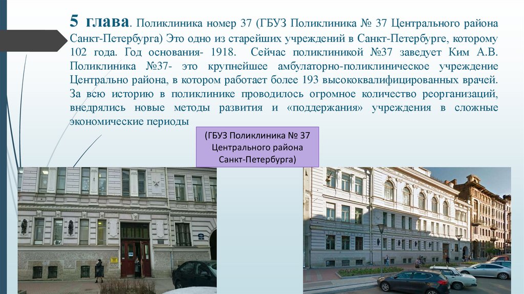 5 глава. Поликлиника номер 37 (ГБУЗ Поликлиника № 37 Центрального районаСанкт-Петербурга) Это одно из старейших учреждений в Санкт-Петербурге, которому