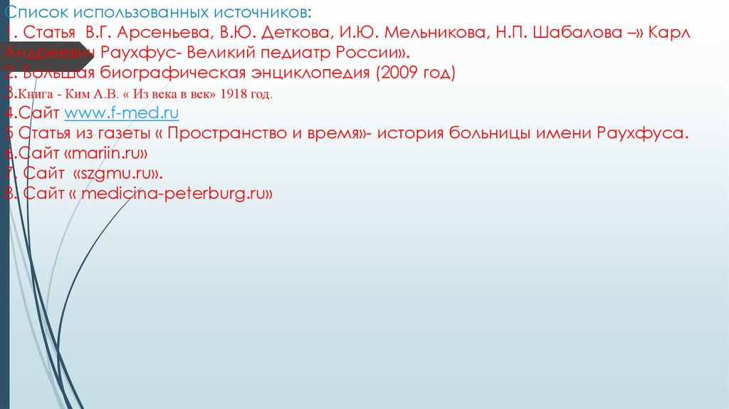 Список использованных источников:1. Статья В.Г. Арсеньева, В.Ю. Деткова, И.Ю. Мельникова, Н.П. Шабалова –» Карл