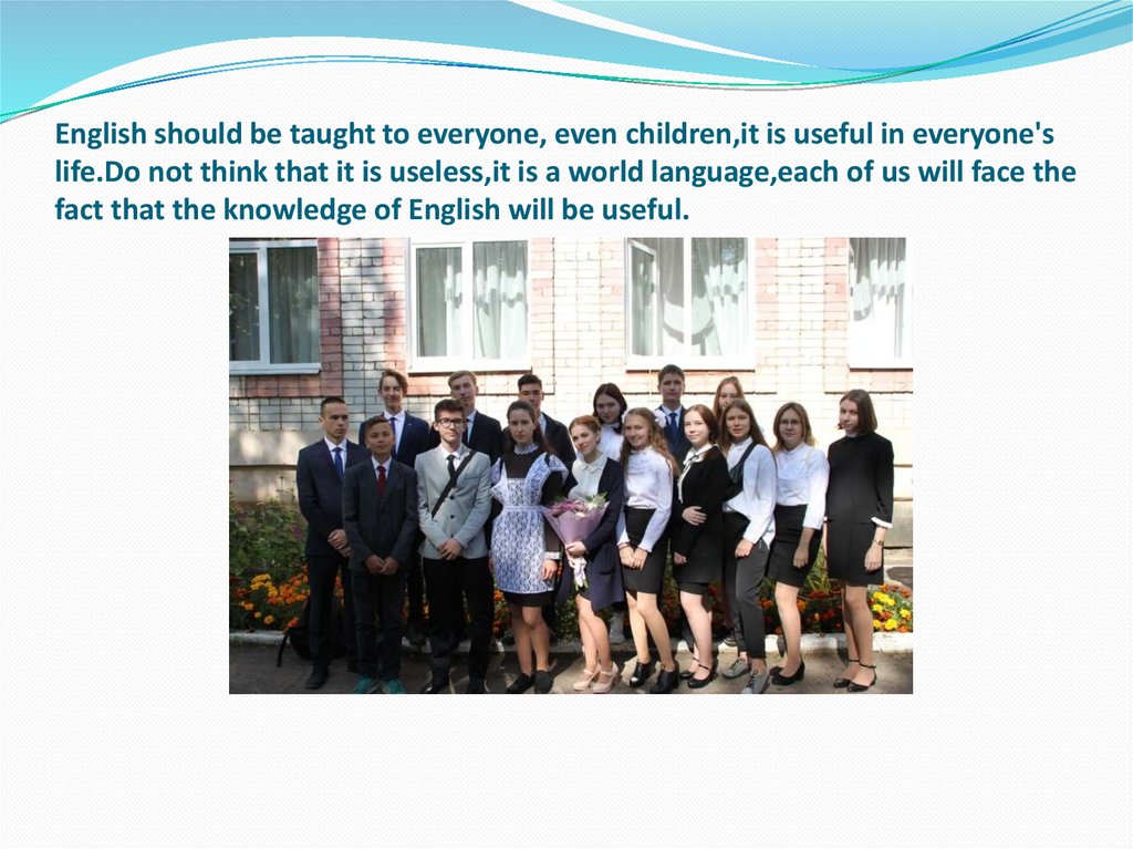 English should be taught to everyone, even children,it is useful in everyone'slife.Do not think that it is useless,it is a world language,each of us will face the