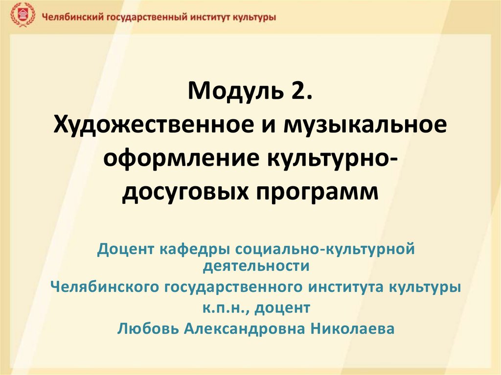 Художественное и музыкальное оформление культурнодосуговых программ