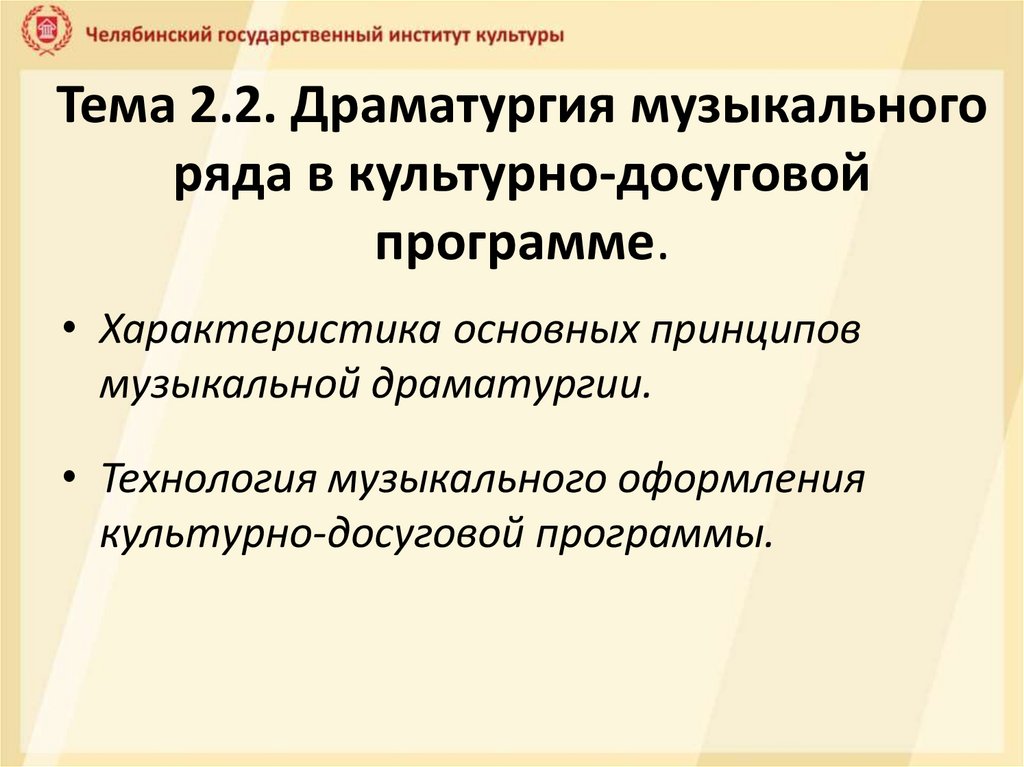 Тема 2.2. Драматургия музыкальногоряда в культурно-досуговой