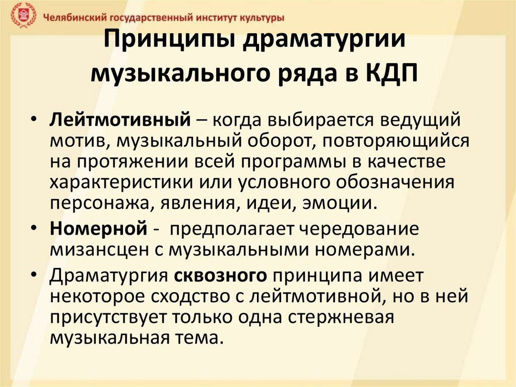 Принципы драматургиимузыкального ряда в КДП
