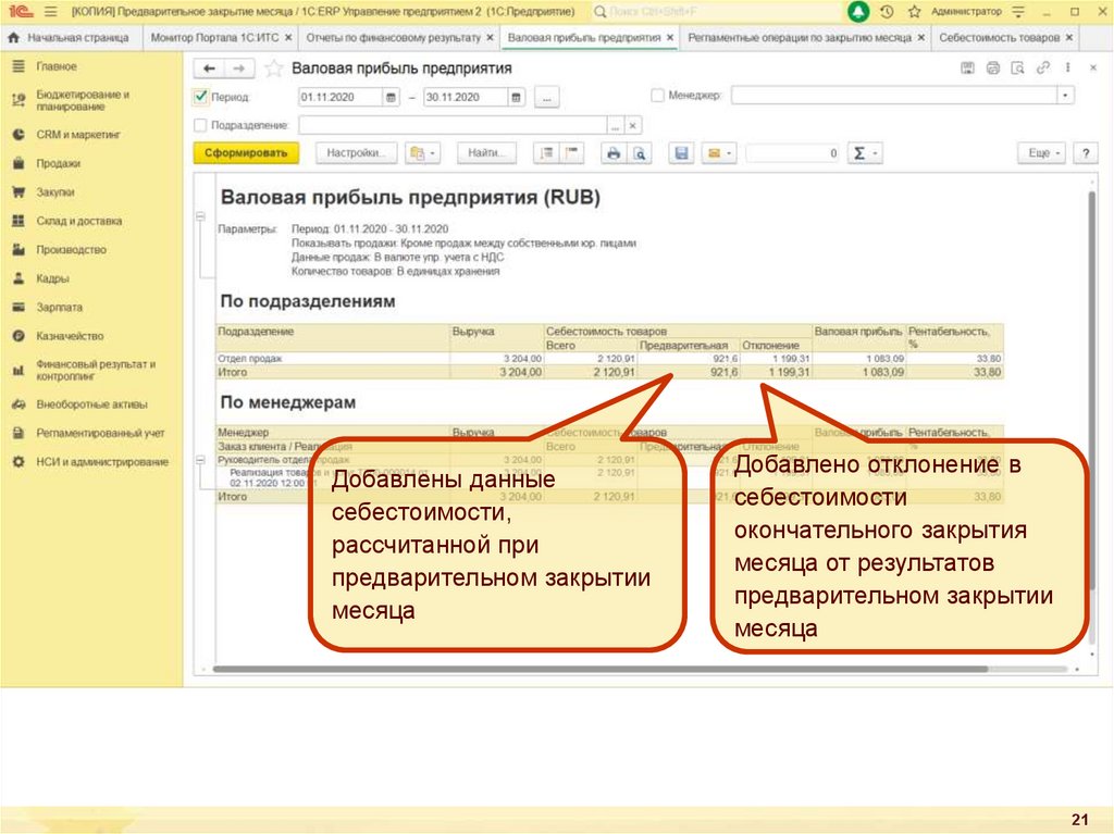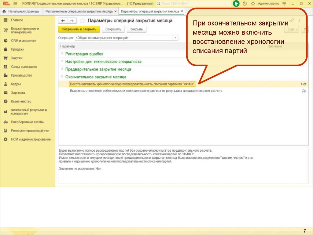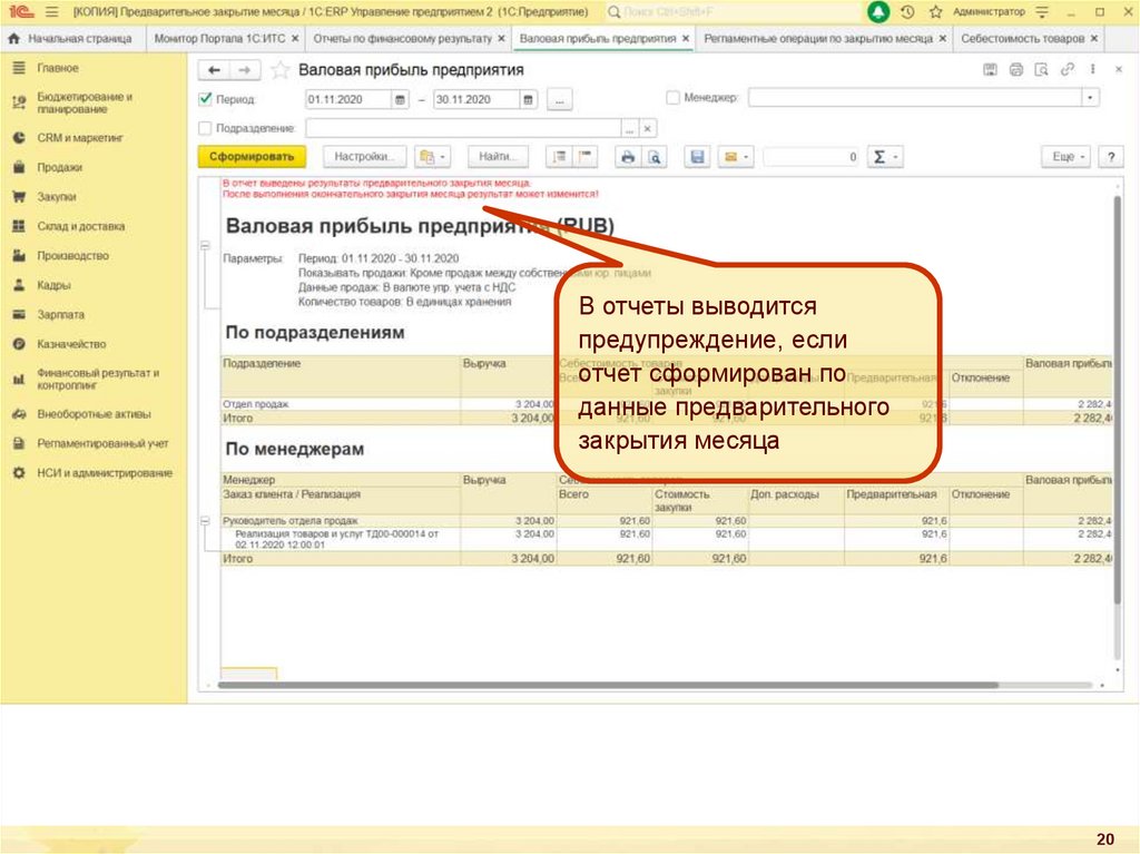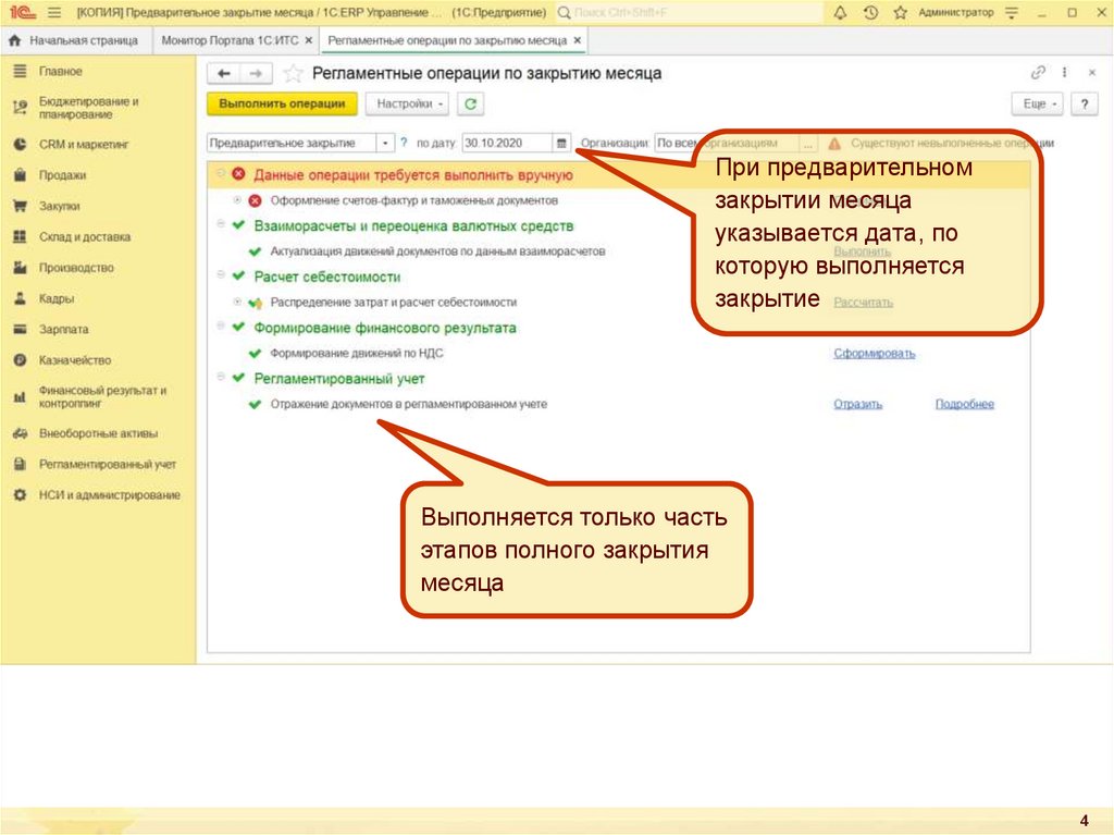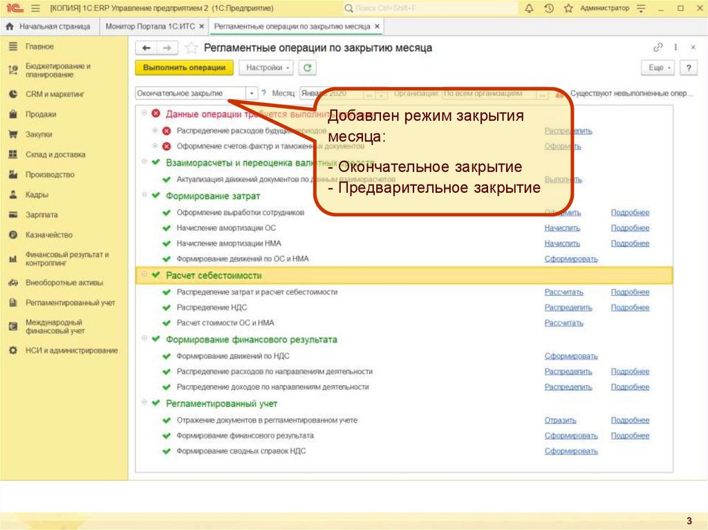 Предварительное закрытие месяца и выделение отклонений поддерживание только прииспользовании партионного учета версии 2.2