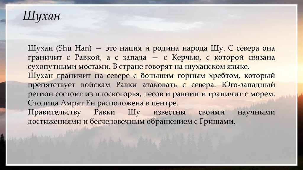 ШуханШухан (Shu Han) — это нация и родина народа Шу. С севера она
