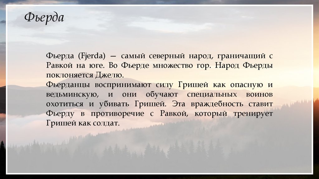 Равкой на юге. Во Фьерде множество гор. Народ Фьерды