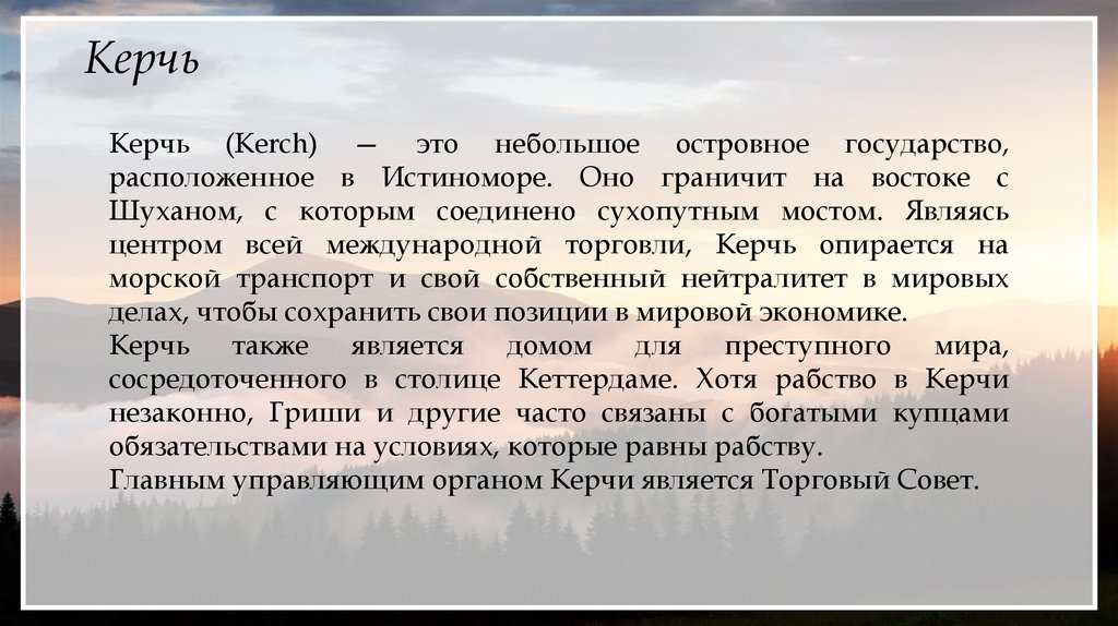 КерчьКерчь (Kerch) — это небольшое островное государство,