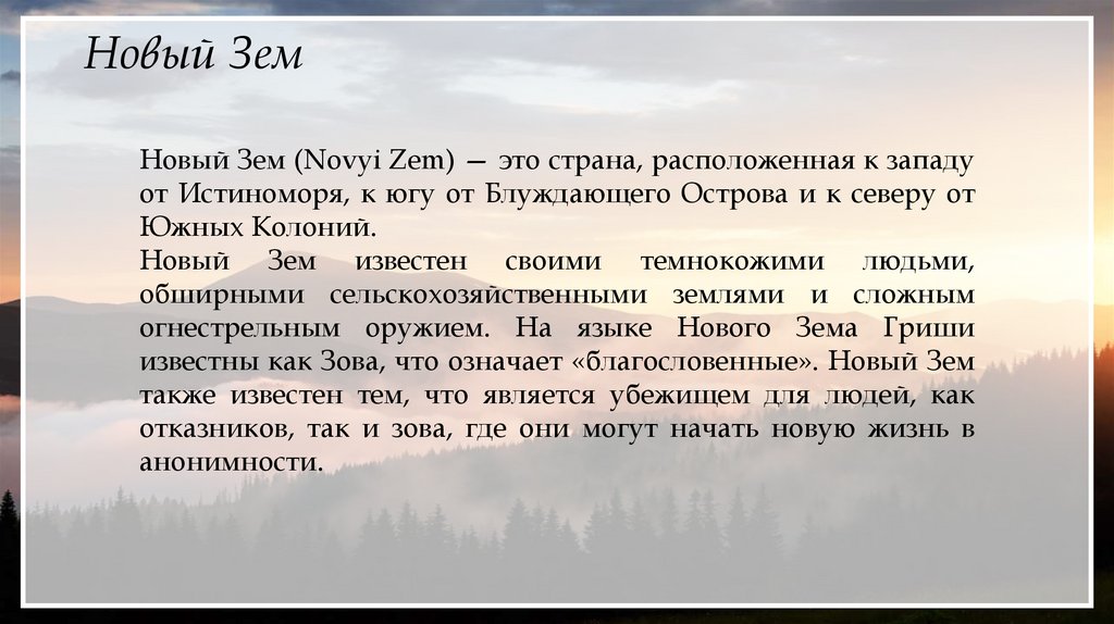 Новый ЗемНовый Зем (Novyi Zem) — это страна, расположенная к западу