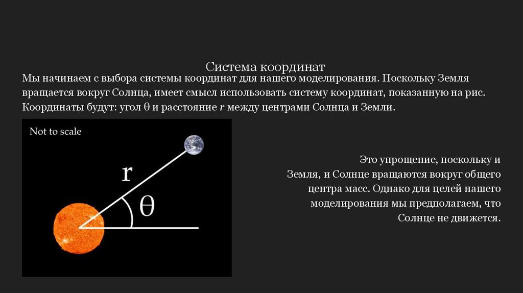 Координаты будут: угол θ и расстояние r между центрами Солнца и Земли.