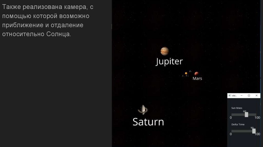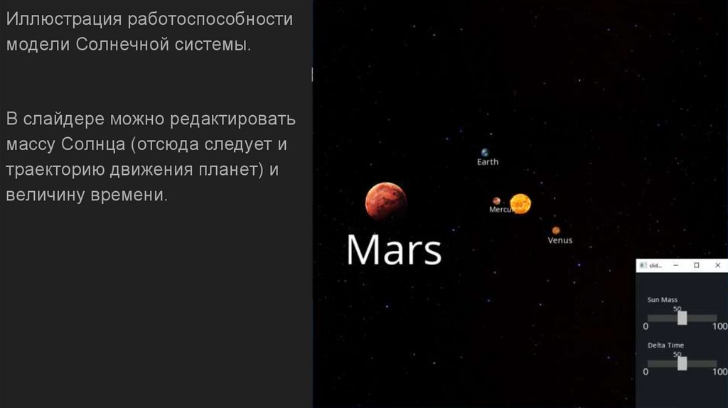 нашей программы позволяет динамически изменять массу Солнца, а также