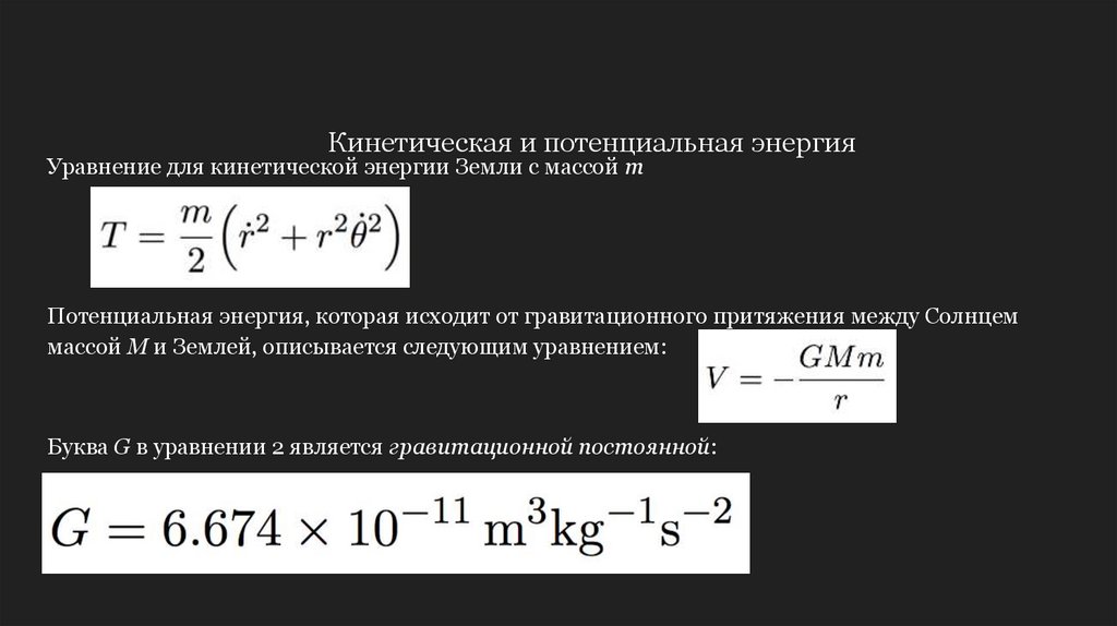 Кинетическая и потенциальная энергияУравнение для кинетической энергии Земли с массой m