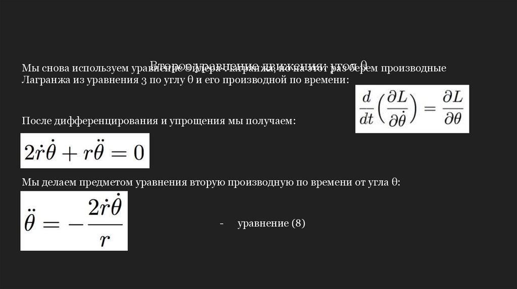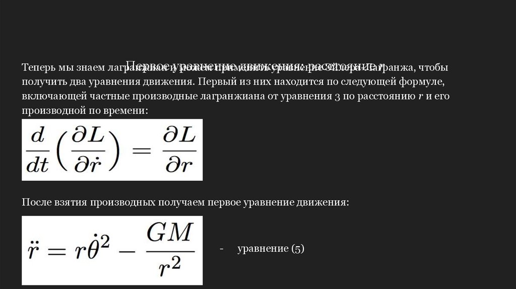 получить два уравнения движения. Первый из них находится по следующей формуле,
