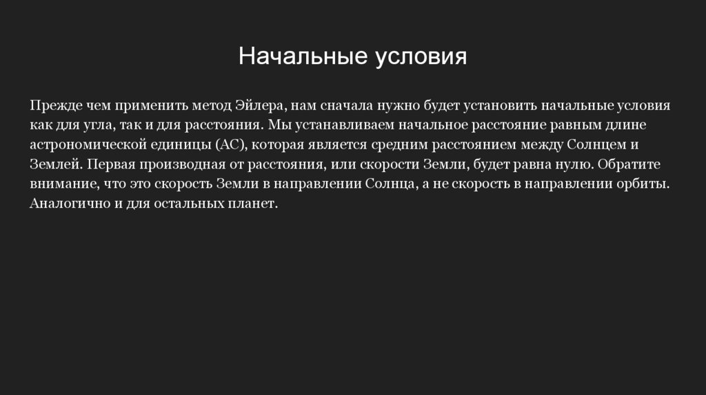 Начальные условияПрежде чем применить метод Эйлера, нам сначала нужно будет установить начальные условия