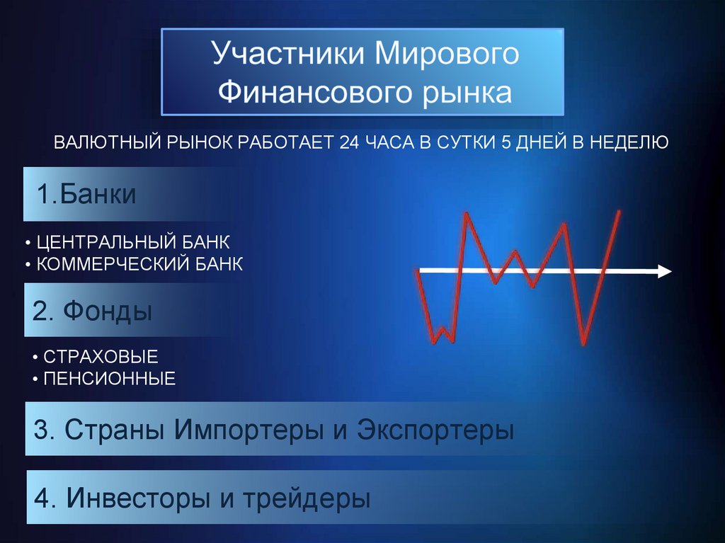 ВАЛЮТНЫЙ РЫНОК РАБОТАЕТ 24 ЧАСА В СУТКИ 5 ДНЕЙ В НЕДЕЛЮ1.Банки