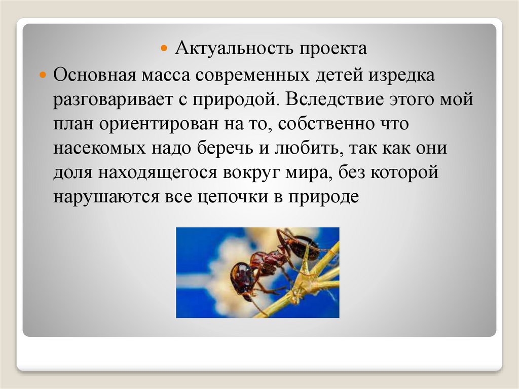 Гипотеза проектаВ случае если узнать о значении насекомых в