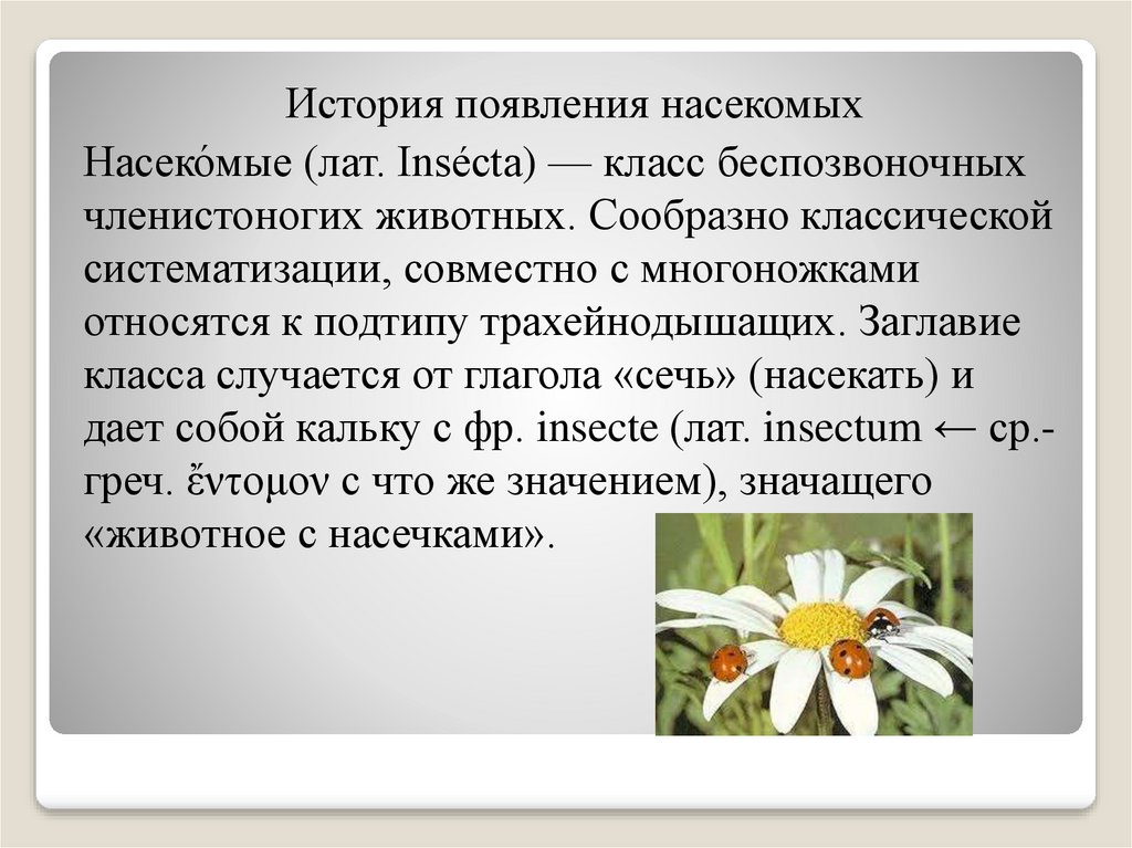 История появления насекомыхНасеко́мые (лат. Insécta) — класс беспозвоночных