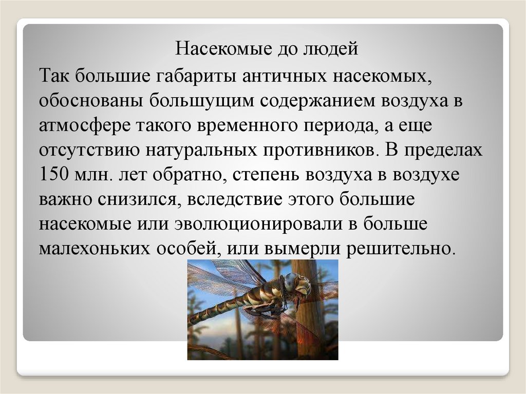 Насекомые до людейТак большие габариты античных насекомых,