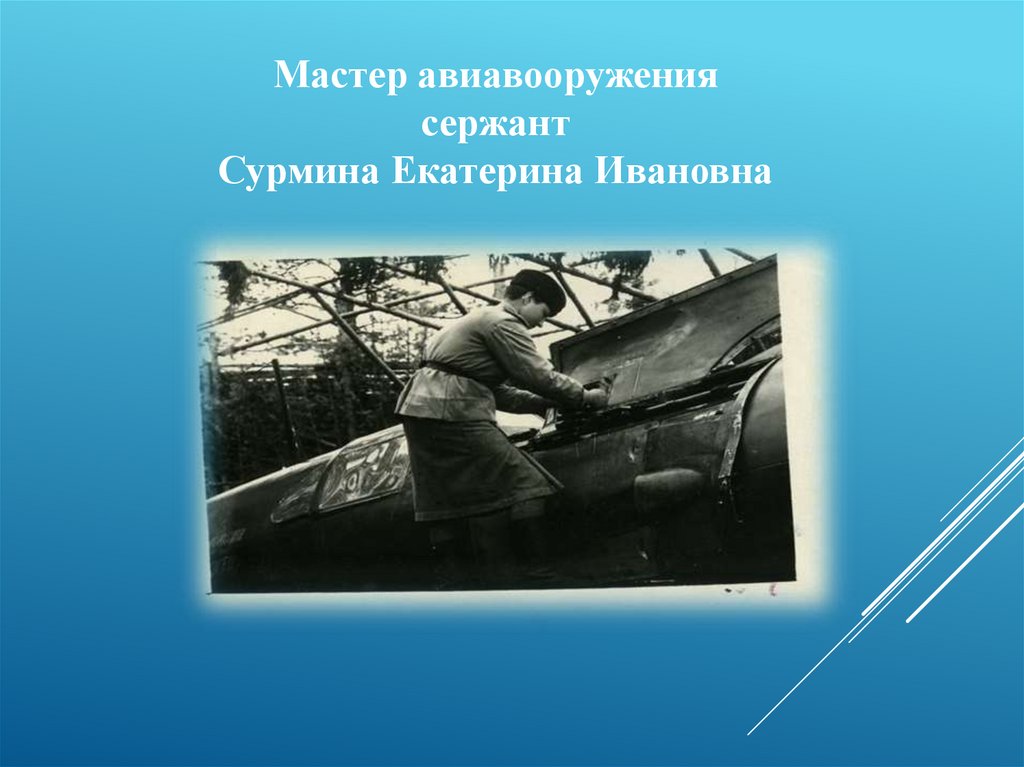 Мастер авиавооружения сержант Сурмина Екатерина Ивановна