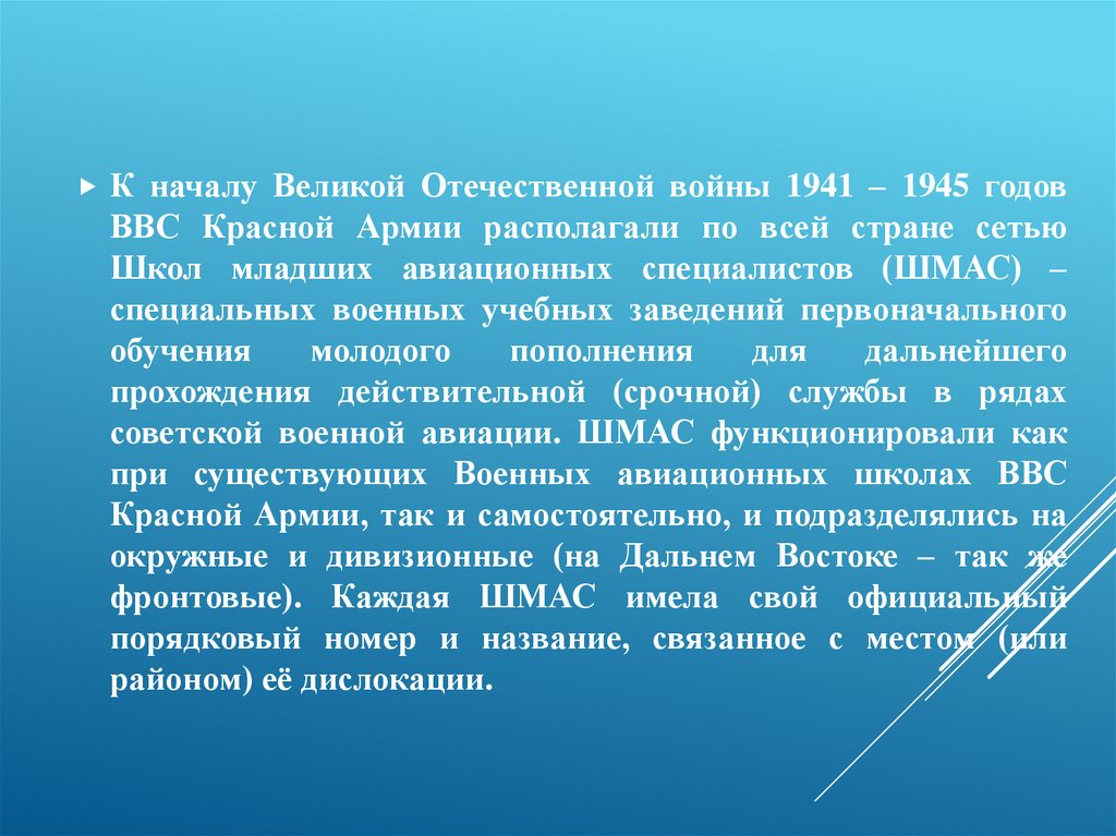К началу Великой Отечественной войны 1941 – 1945 годовВВС Красной Армии располагали по всей стране сетью