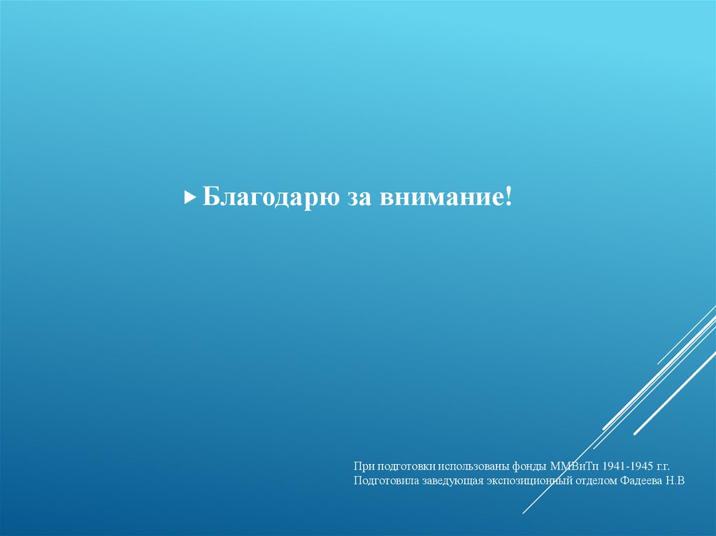 При подготовки использованы фонды ММВиТп 1941-1945 г.г.