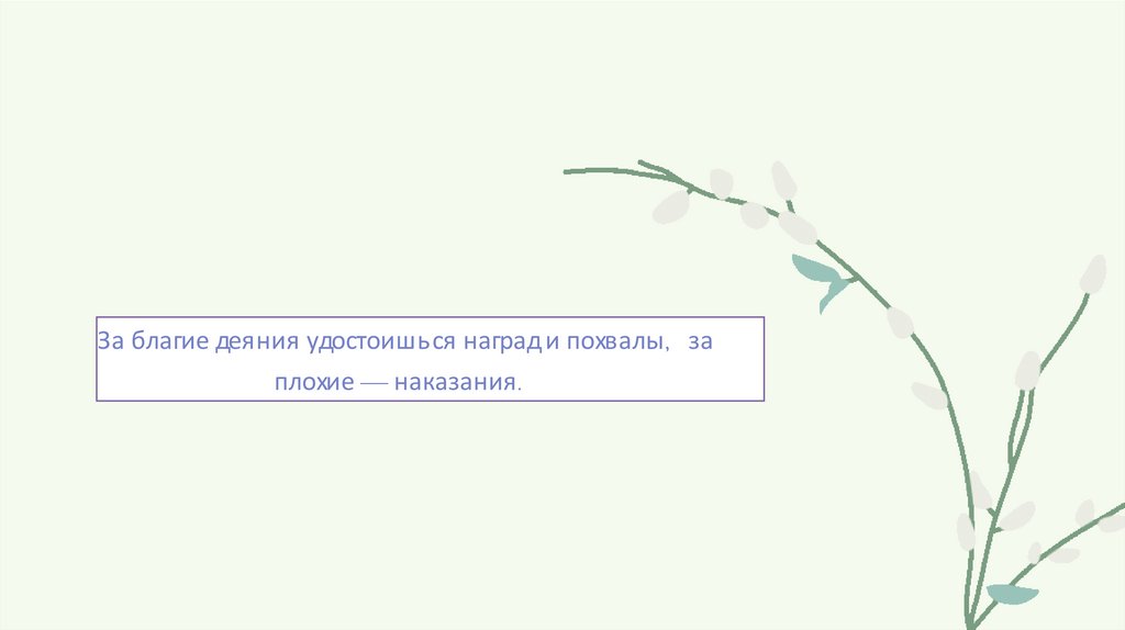 За благие деяния удостоишься наград и похвалы , заплохие — наказания .