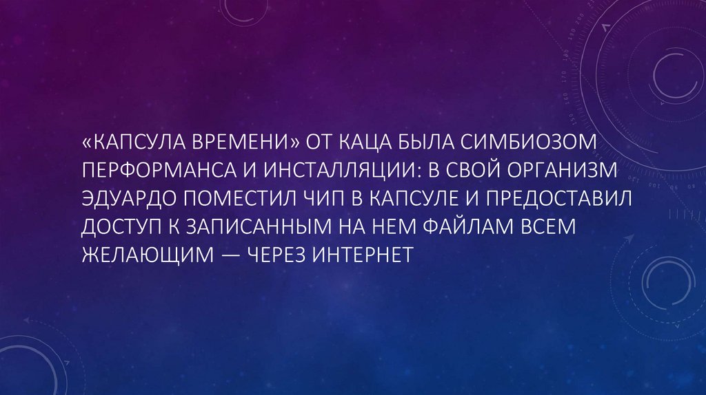 «КАПСУЛА ВРЕМЕНИ» ОТ КАЦА БЫЛА СИМБИОЗОМПЕРФОРМАНСА И ИНСТАЛЛЯЦИИ: В СВОЙ ОРГАНИЗМ