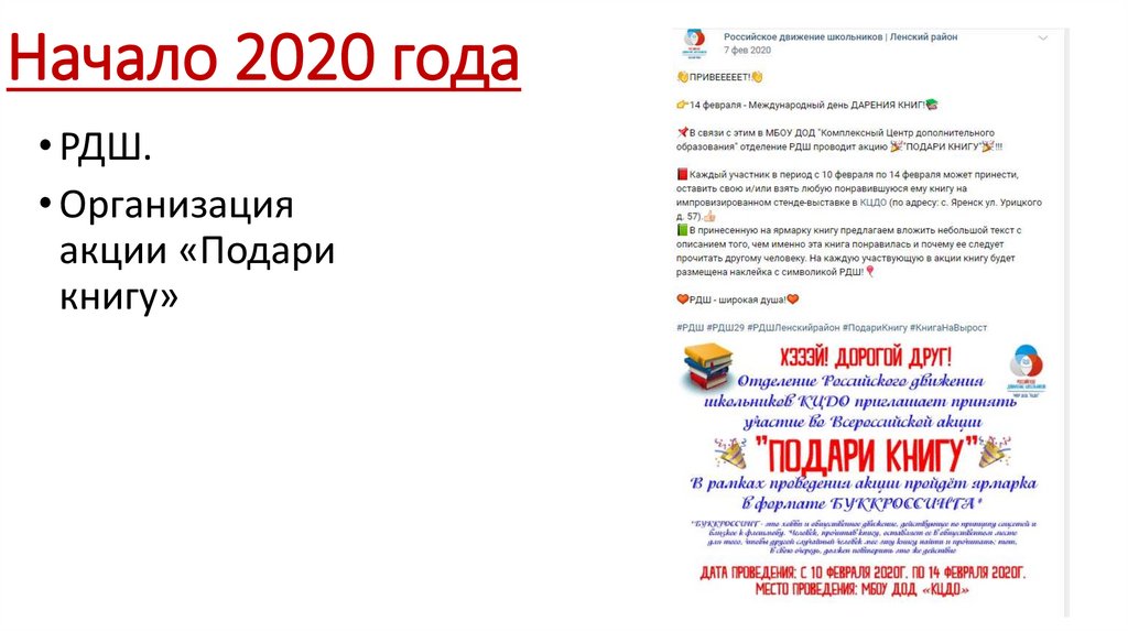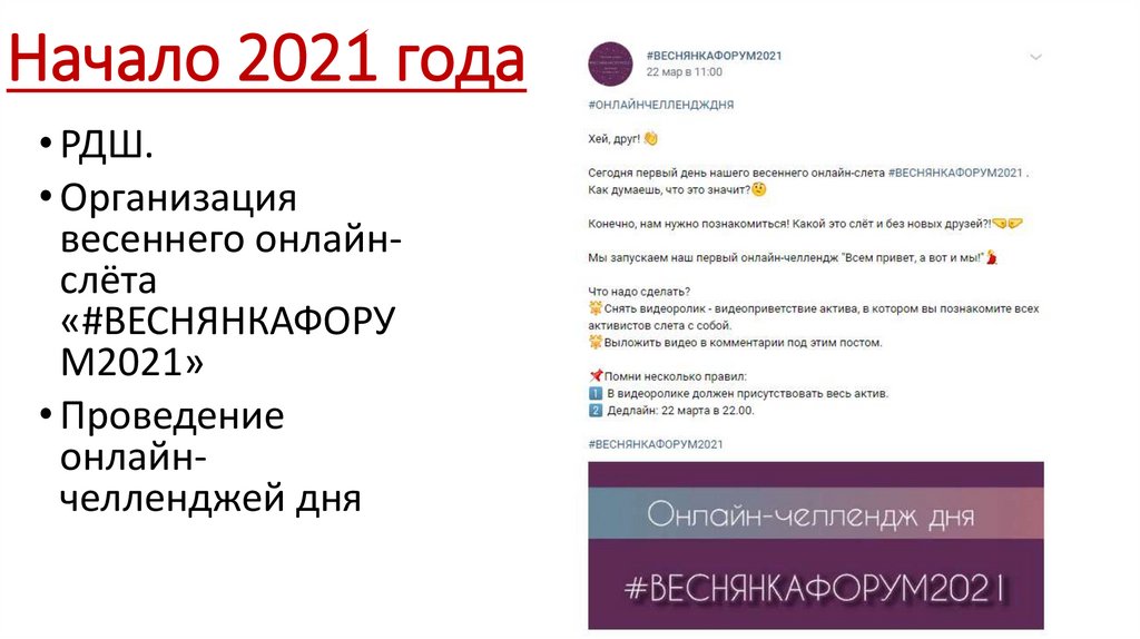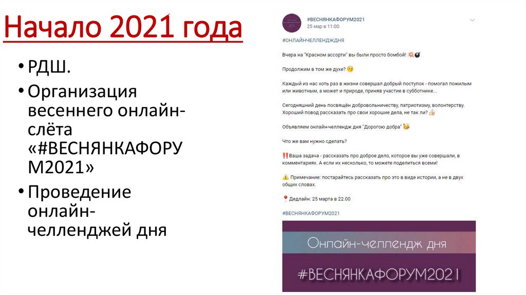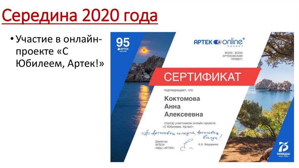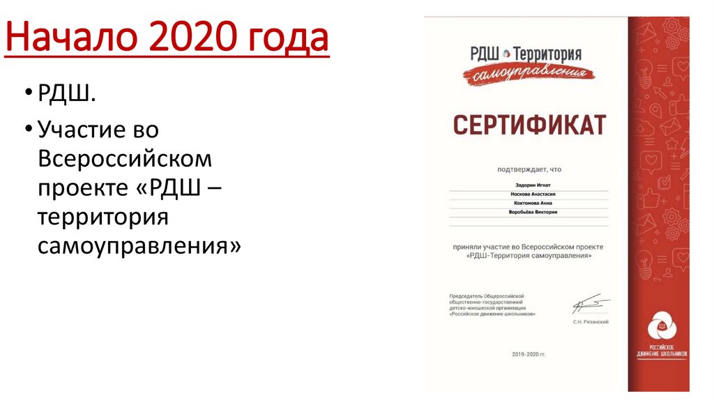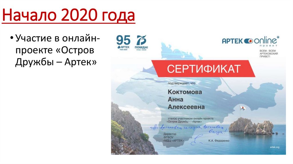 Начало 2020 года• Участие в онлайнпроекте «Остров