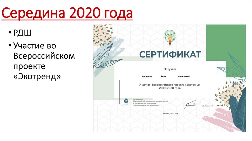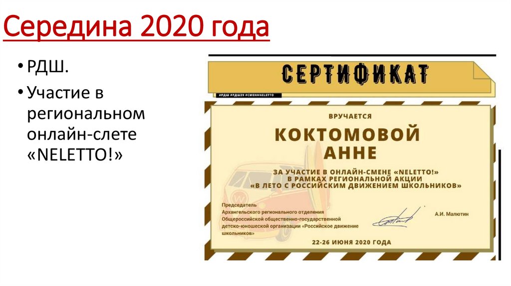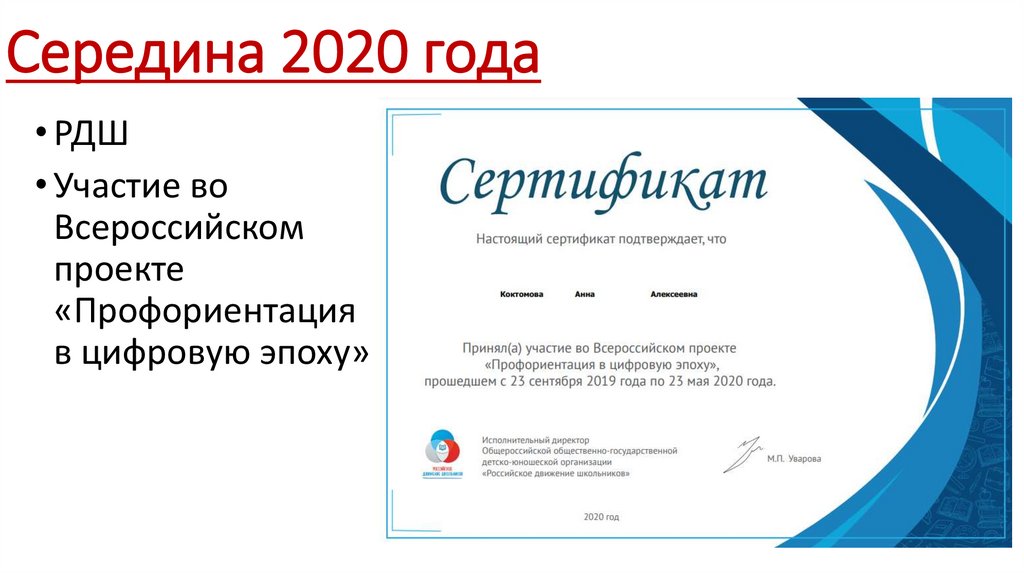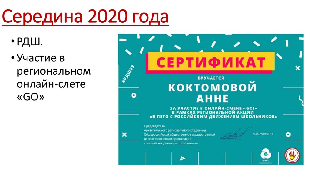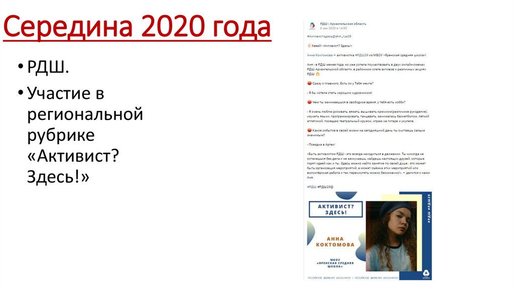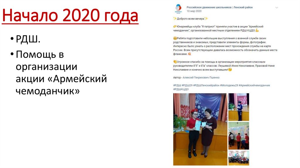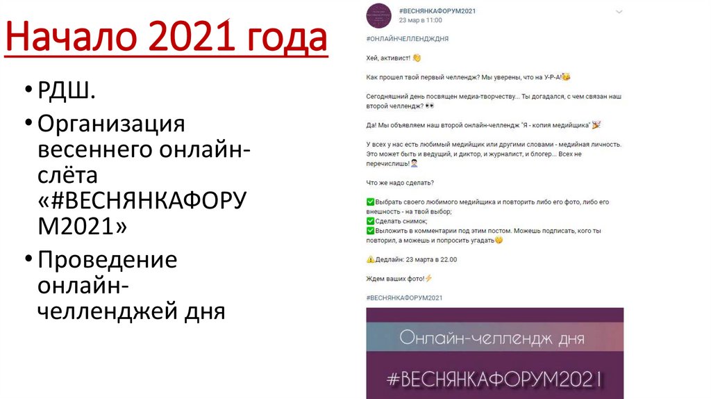 Начало 2020 года• Участие в онлайнпроекте «Остров