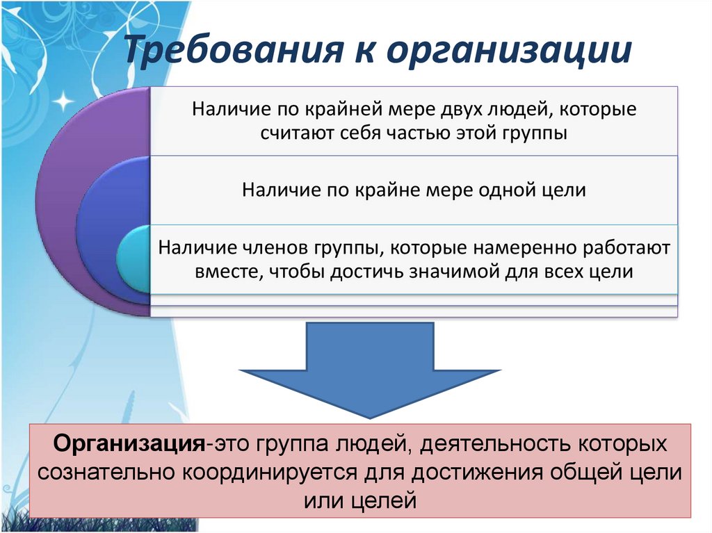 Требования к организацииНаличие по крайней мере двух людей, которые