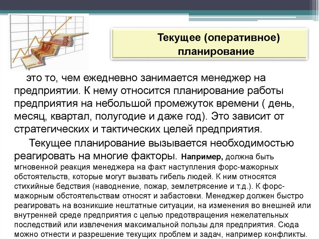 В зависимости от характера работцелесообразно планировать их выполнение в
