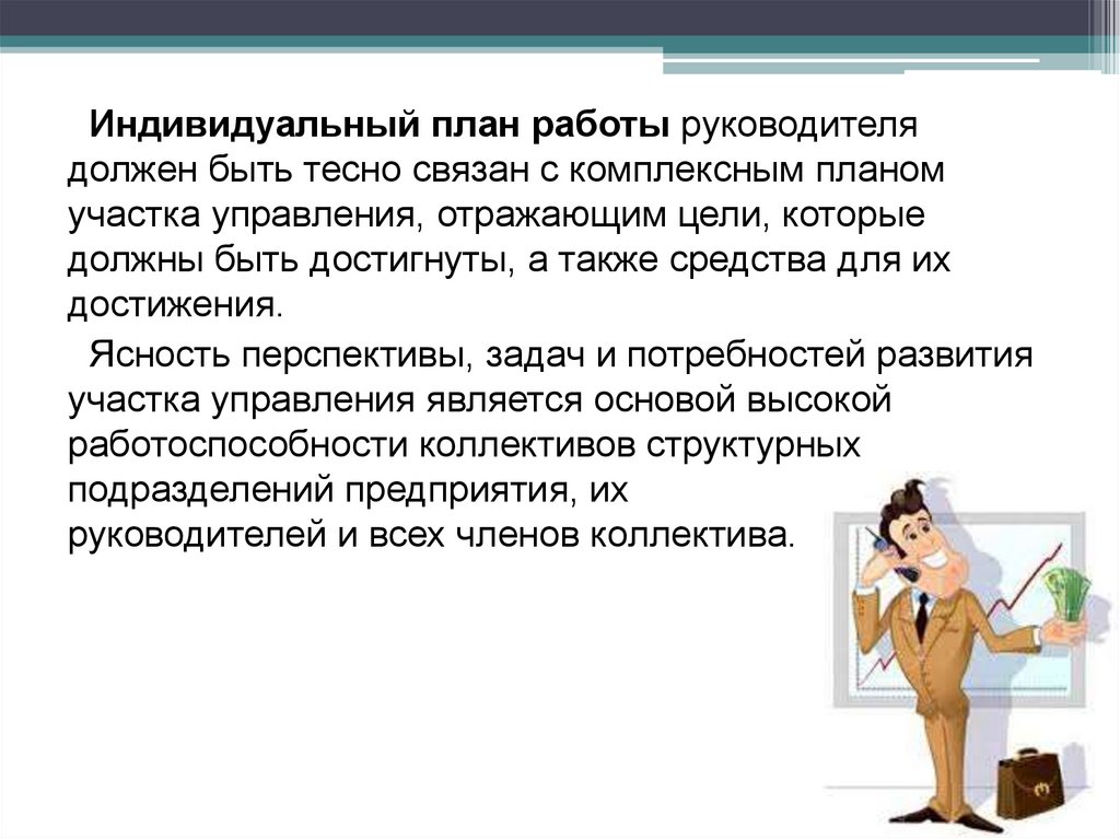 Аналогично комплексным планам руководящейработы планы индивидуальной работы руководителей также составляются на квартал, месяц, неделю.