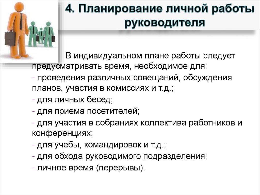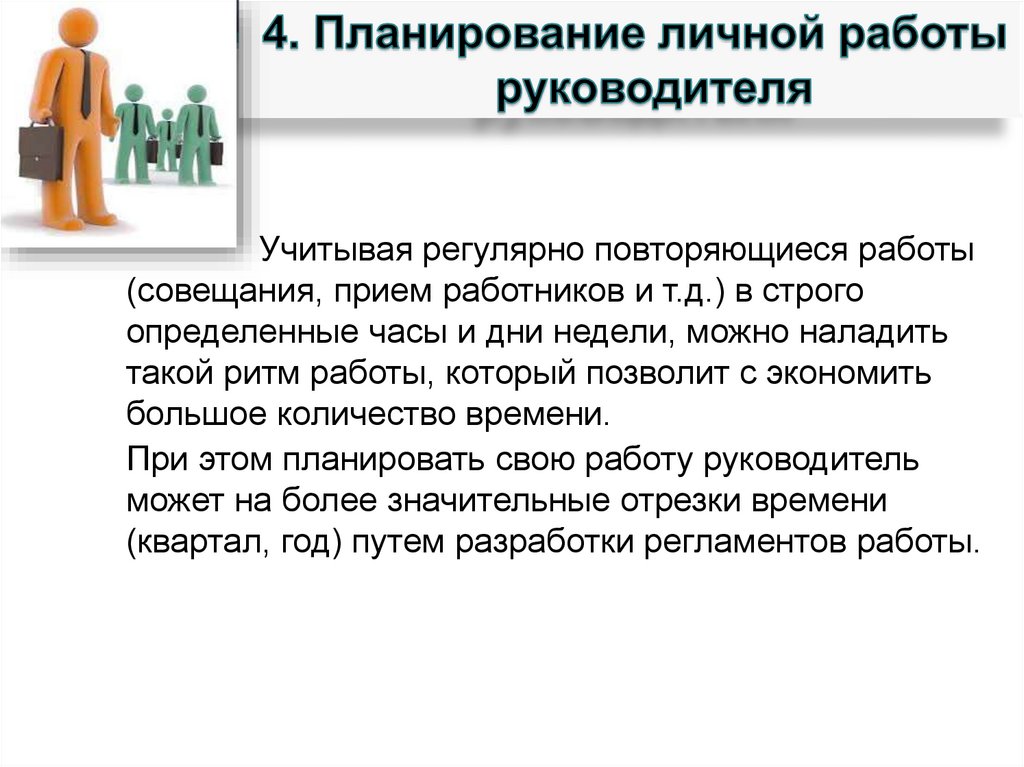 Учитывая регулярно повторяющиеся работы(совещания, прием работников и т.д.) в строго
