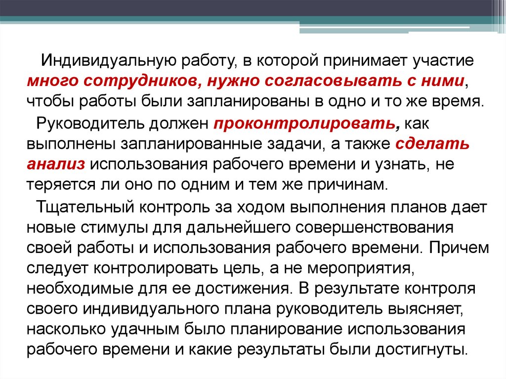 В индивидуальном плане работы следуетпредусматривать время, необходимое для: