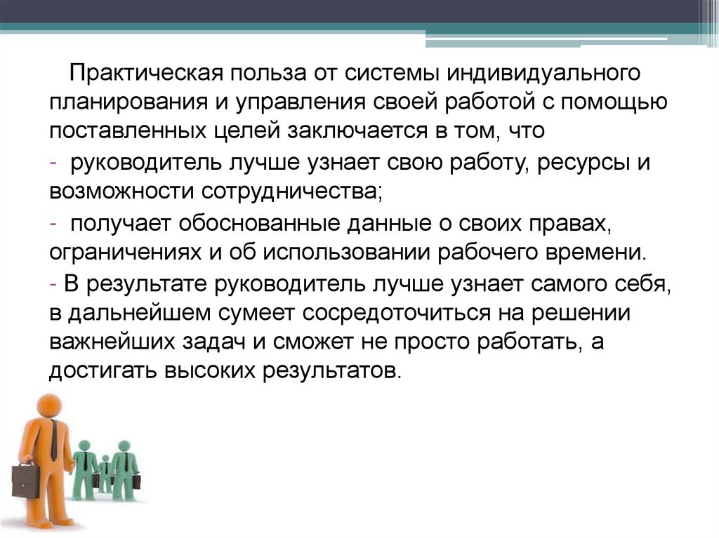 Практическая польза от системы индивидуальногопланирования и управления своей работой с помощью