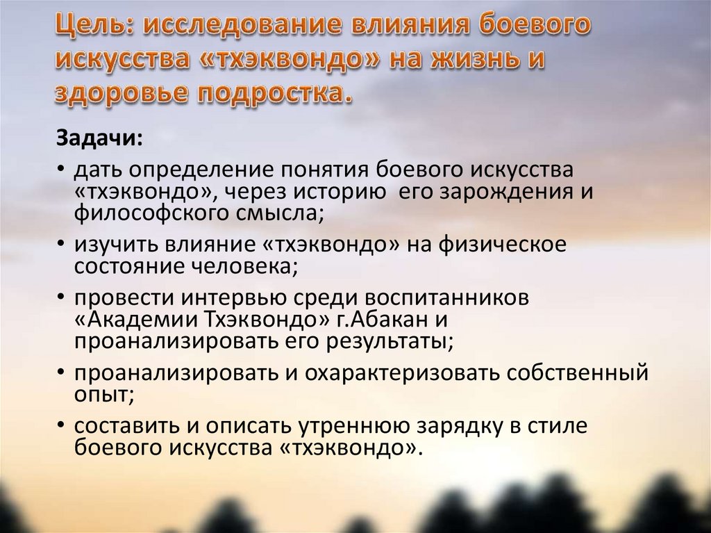 Положительное влияние боевогоискусства «тхэквондо» на подростка