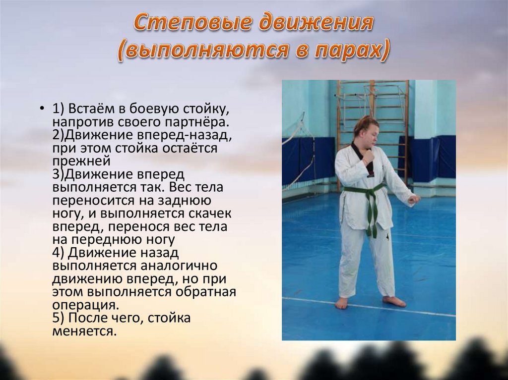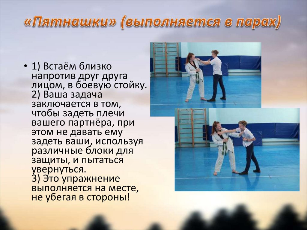 • 1) Встаём в боевую стойку,напротив своего партнёра.