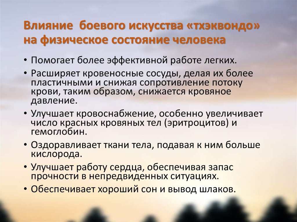Влияние боевого искусства «тхэквондо»на физическое состояние человека