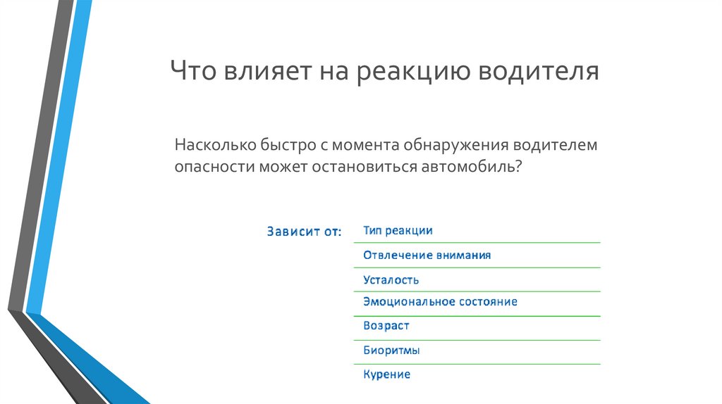 Что влияет на реакцию водителяНасколько быстро с момента обнаружения водителем