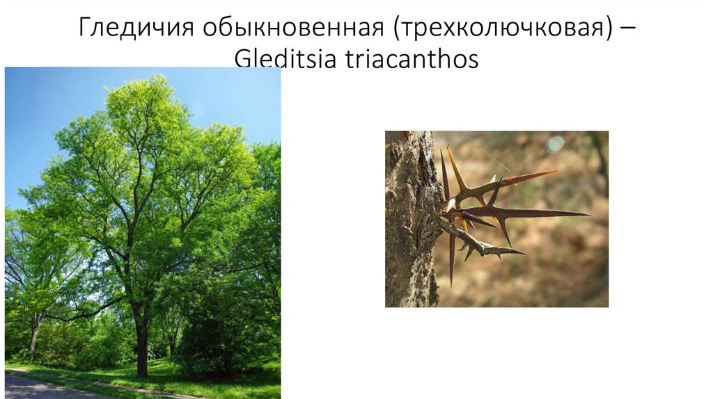 СЕМЕЙСТВО БОБОВЫЕ FabaceaeГледичия обыкновенная (трехколючковая) – Gleditsia triacanthos,