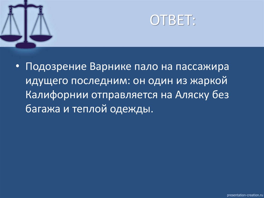 ОТВЕТ:• Подозрение Варнике пало на пассажира