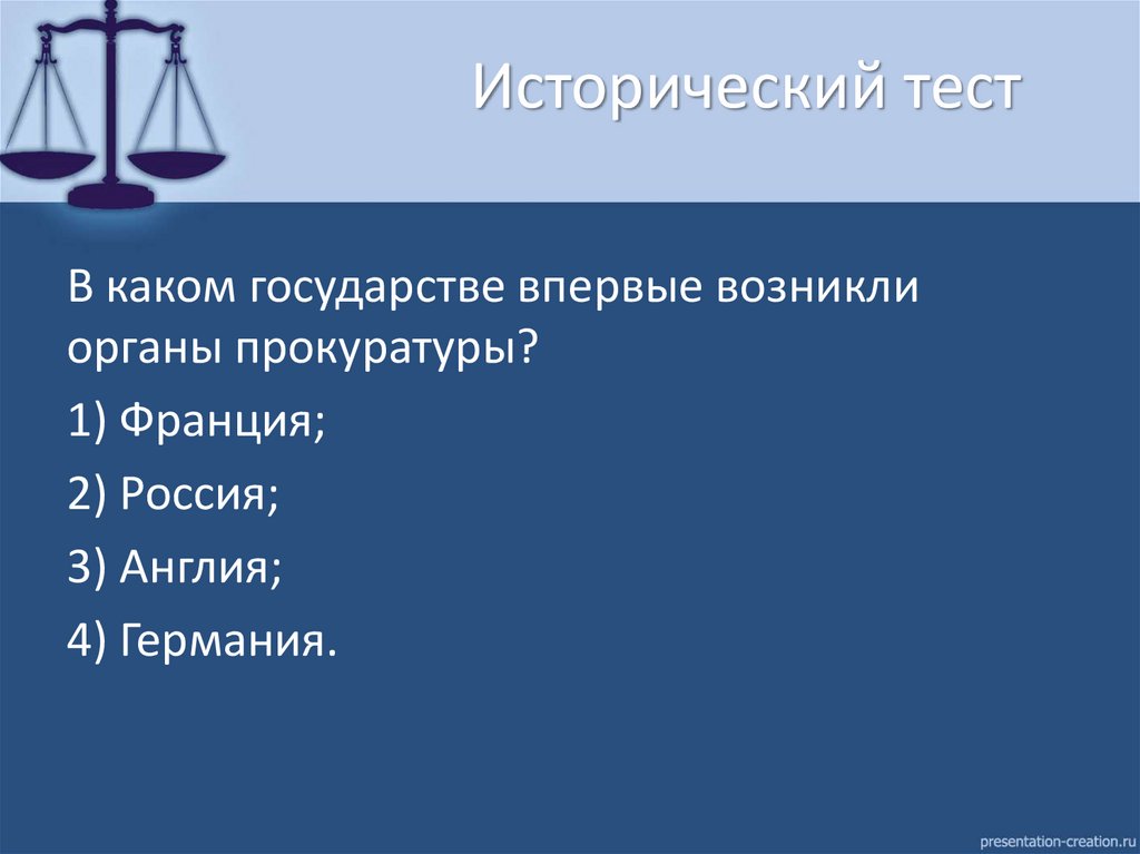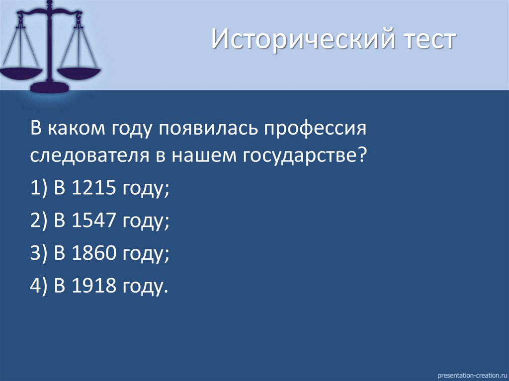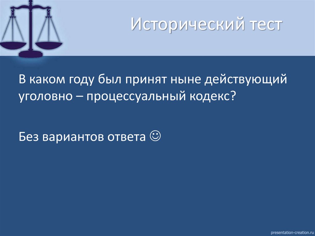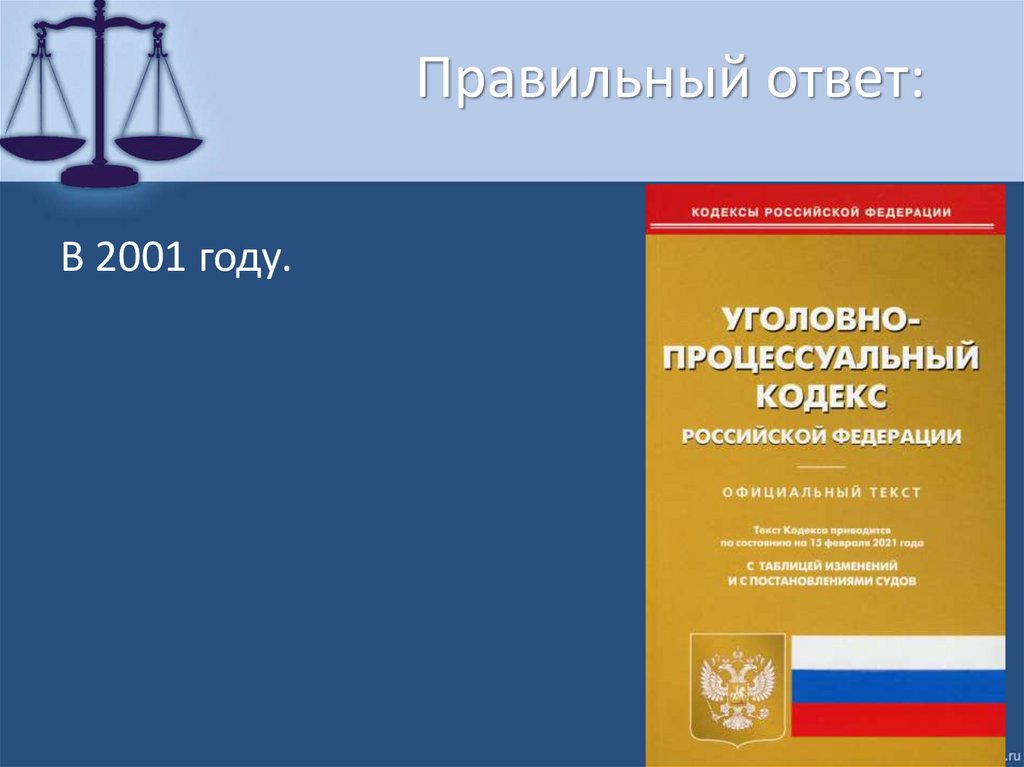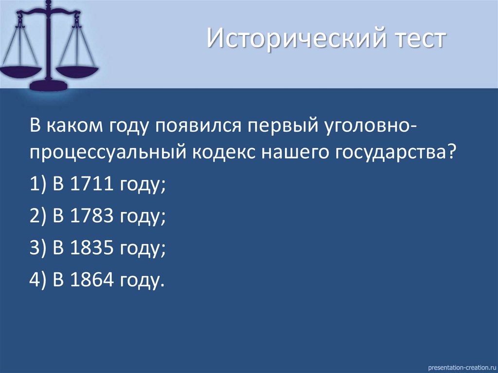 Исторический тестВ каком году появился первый уголовнопроцессуальный кодекс нашего государства?