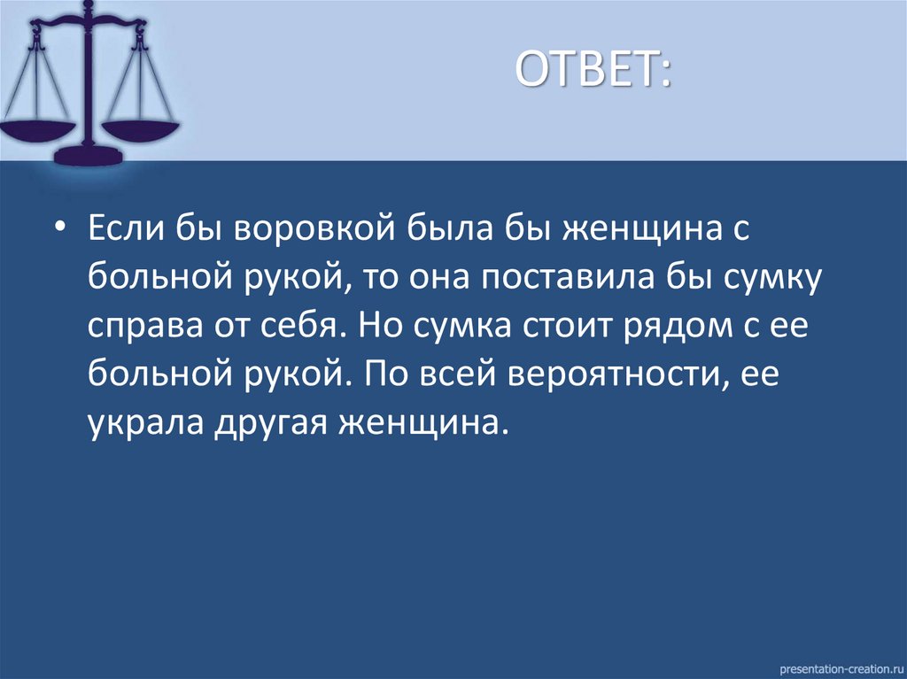 ОТВЕТ:• Если бы воровкой была бы женщина с
