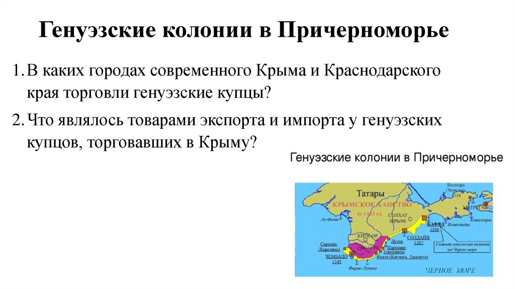 Генуэзские колонии в Причерноморье1.В каких городах современного Крыма и Краснодарского