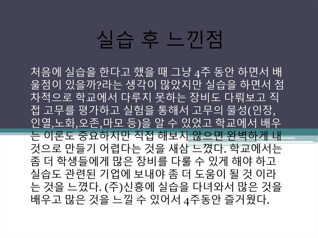 는 것을 느꼈다. (주)신흥에 실습을 다녀와서 많은 것을