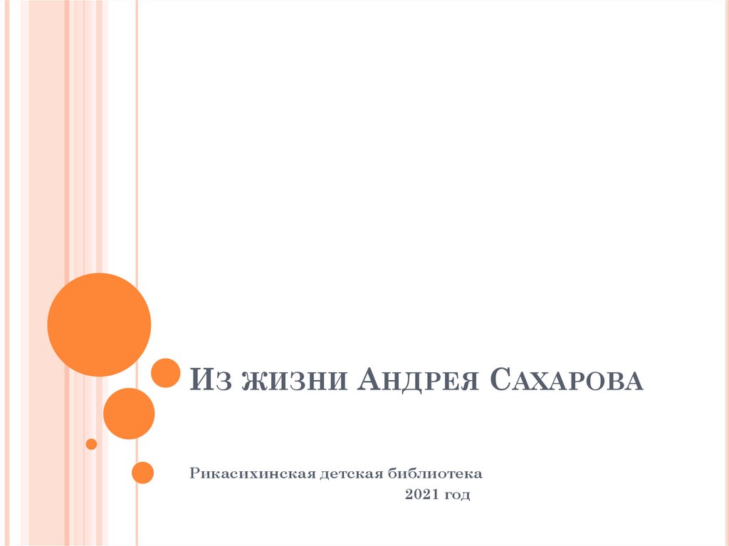 ИЗ ЖИЗНИ АНДРЕЯ САХАРОВАРикасихинская детская библиотека
